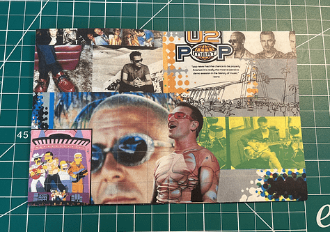 Finally, I took it upon myself to make a lesser-known and utilized zine type as an experiment. This past week, I was really into U2’s Pop (1997) and made my love known here on Substack. After a rousing conversation about U2 with Henry Beguiristain, Andy’s Weird Ohio, Kevin Alexander, and Miquela Davis, I decided to take this criminally underrated U2 album and make a fanzine to honor its genius.