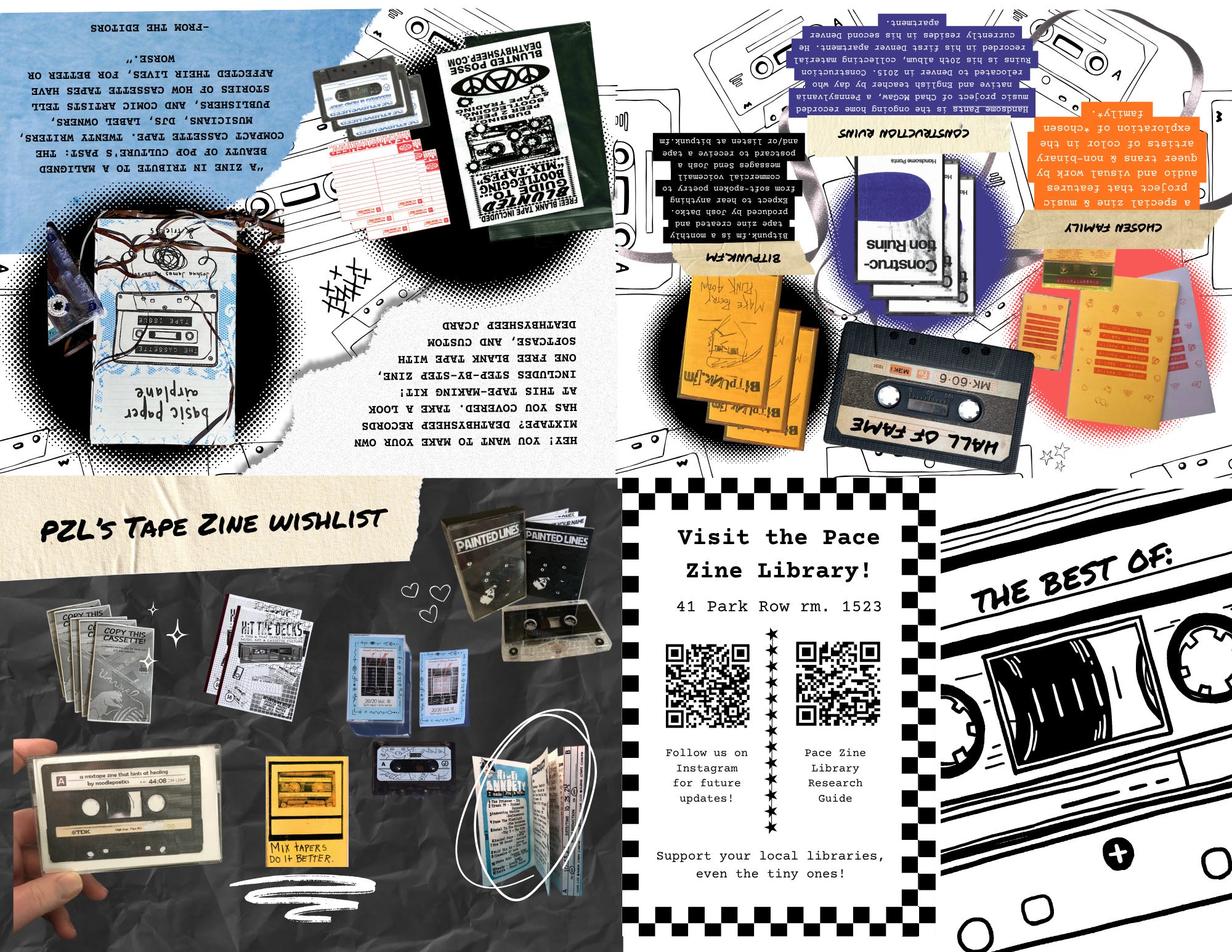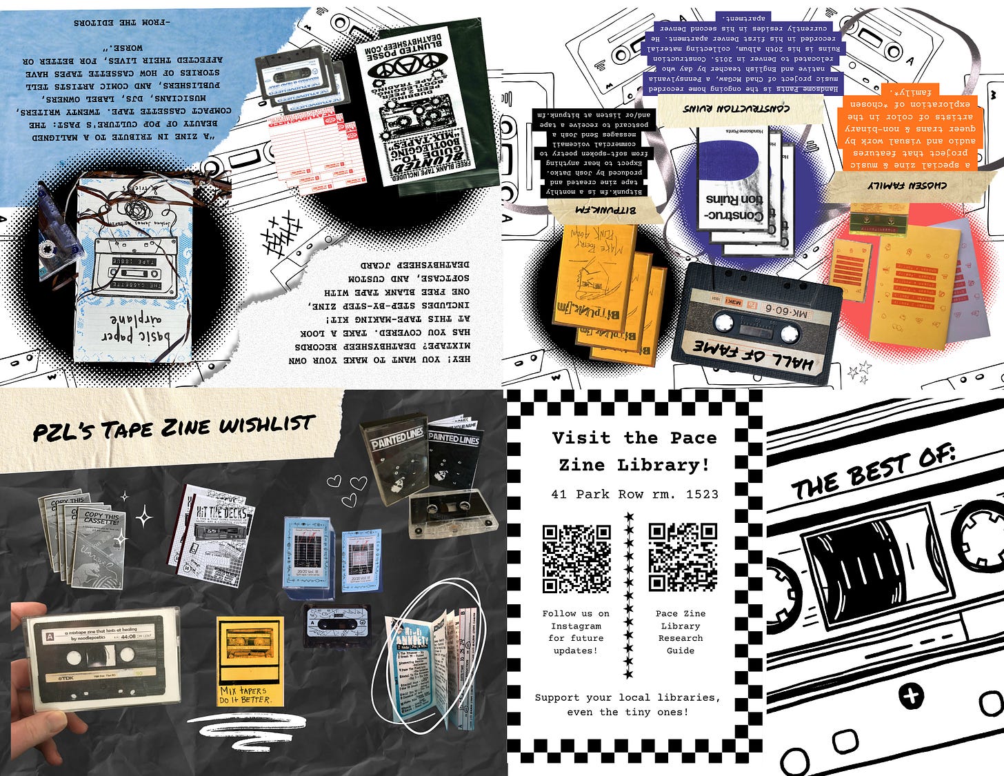 Anyway, you all know I had to make a minizine highlighting the Best Of our Tape Zine collection at the Zine Library. This gave me the golden opportunity to wax poetic about one of my favorite zinesters and Substackers, Josh Datko and his bitpunk.fm tape zine series. By the way—Josh, I played “Turn On, Tune in, Opt out” for the students, and they were honestly hooked. I think I may have to donate my entire collection of your tapes to the Zine Library for future generations of tape enthusiasts to enjoy.
