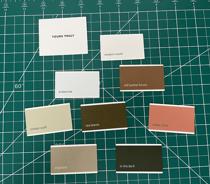 I must choose a prompt and four-to-eight paint chips at random. I get a single opportunity to re-draw a sample if I’m not feeling it, but that’s it. Just one. However, I can redraw if I get a repeat.