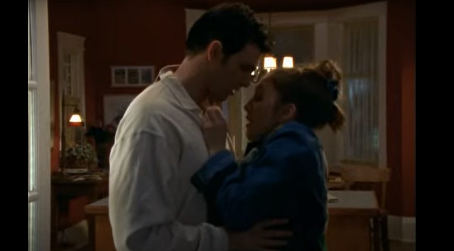 Unbelievably, there’s an episode where Ethan gets completely hammered and kisses Kale’s ultra-Catholic, sixteen-year-old best friend Mary E. (Keep in mind, Ethan is married and probably in his mid-20s.) This all leads to an utterly awkward confession scene in which Mary E. admits to her Priest that she wanted to kiss Ethan and the only reason they STOPPED is because she saw a “naked lady dog tag” hanging around his neck…taking it as “a sign from God” she shouldn’t be there.